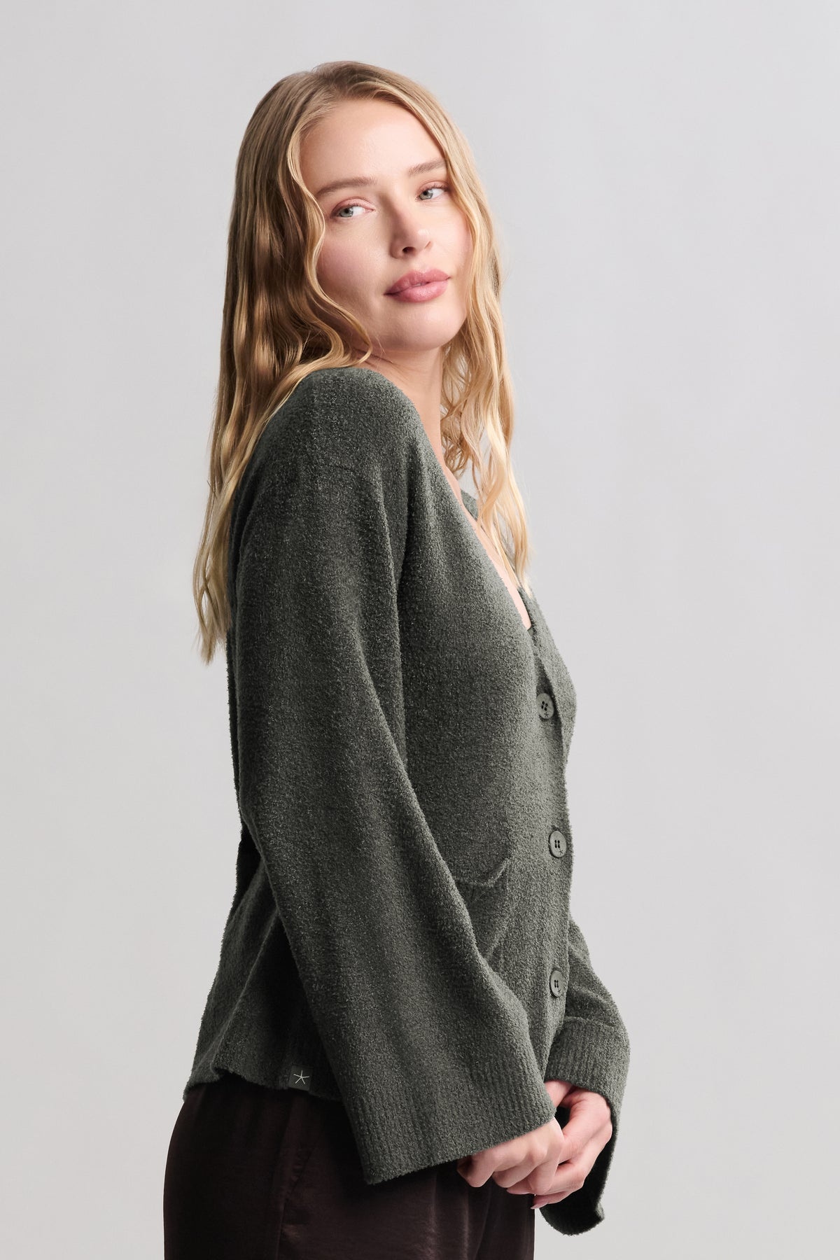 CozyChic Lite Wide Sleeve Button Front Cardigan Dark Moss
