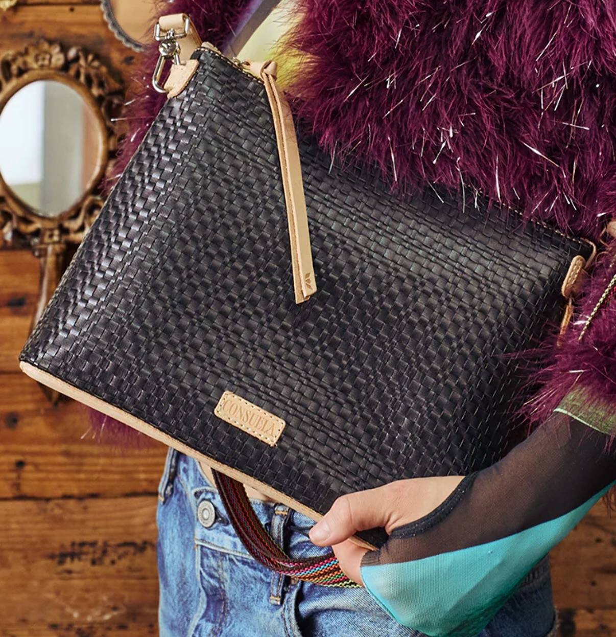 - 11” (W) x 9 ¼” (H) x 3” (D), 14 ½”-27” adjustable crossbody strap drop