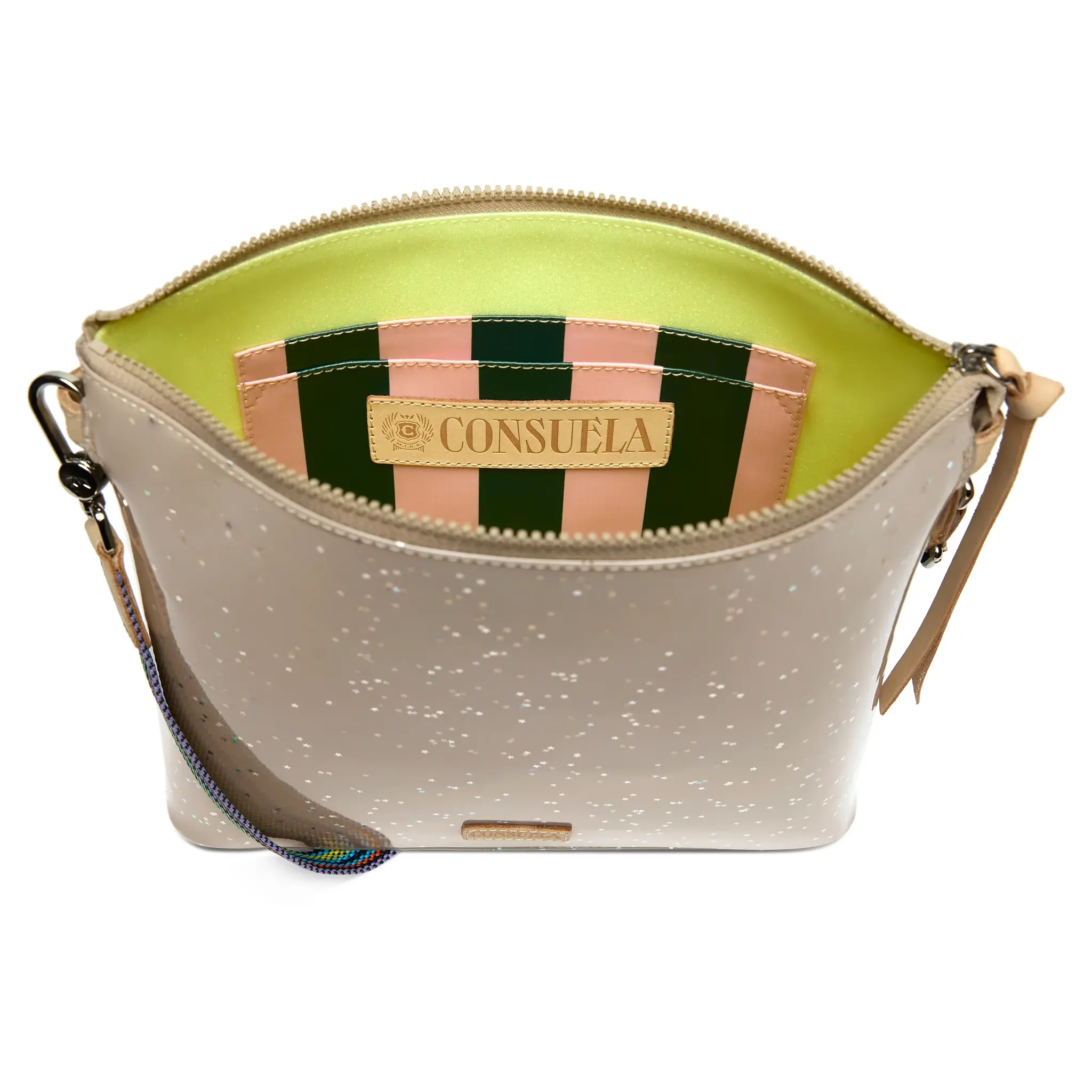 - 11” (W) x 9 ¼” (H) x 3” (D), 14 ½”-27” adjustable crossbody strap drop