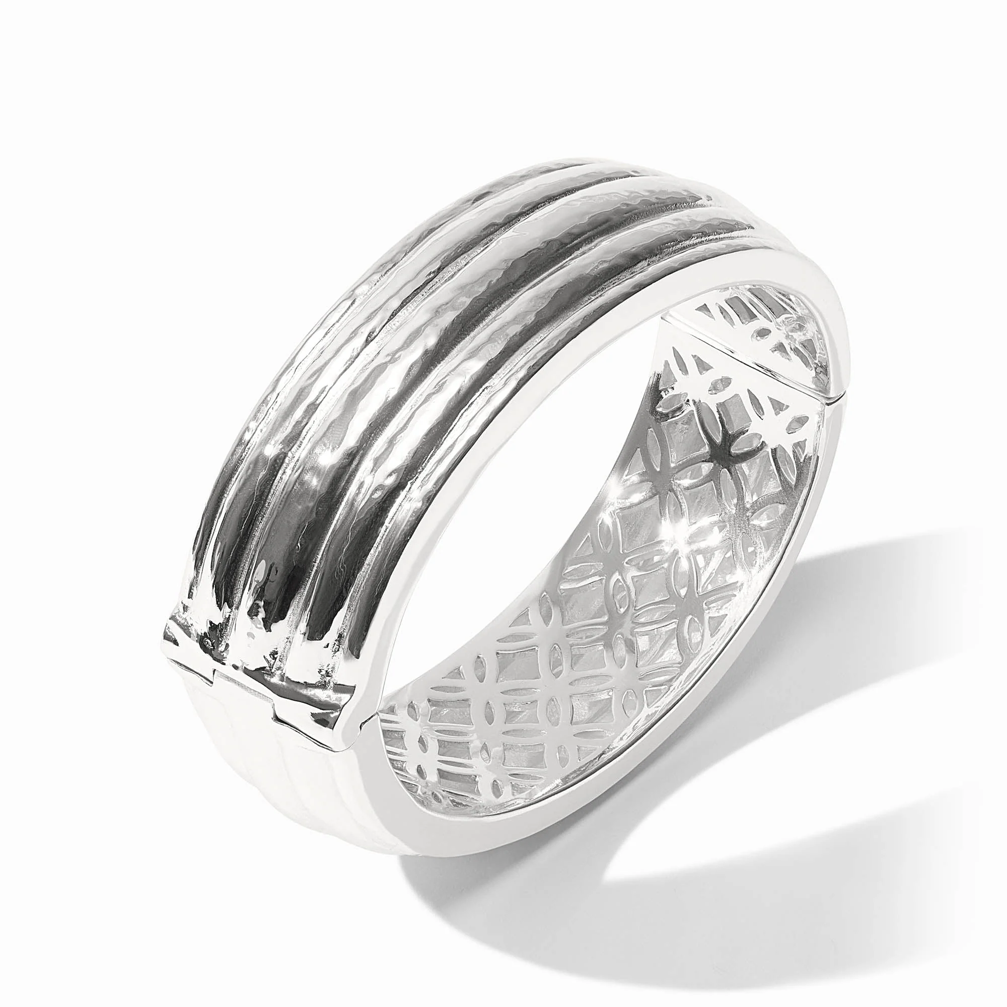 DetailsPure silver plate (sealed to preserve lustre)Inner circumference: 7.1 inchesWidth: 0.9 inchesCloses with spring hingeJulie Vos hallmark