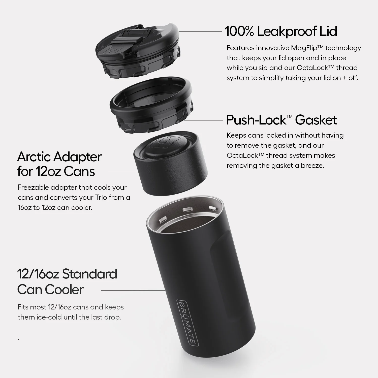 Details16/12oz Can-Cooler & TumblerBevLock™ Leakproof LidEvery Sip, Ice-ColdPush-Lock™ GasketCup Holder Friendly
