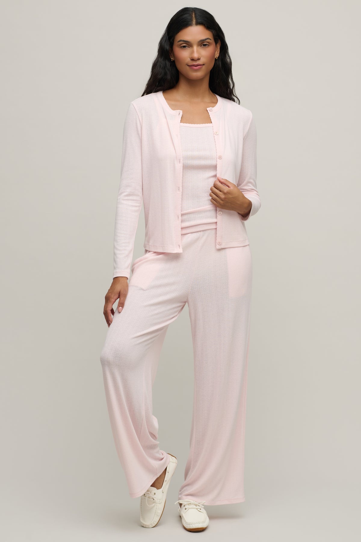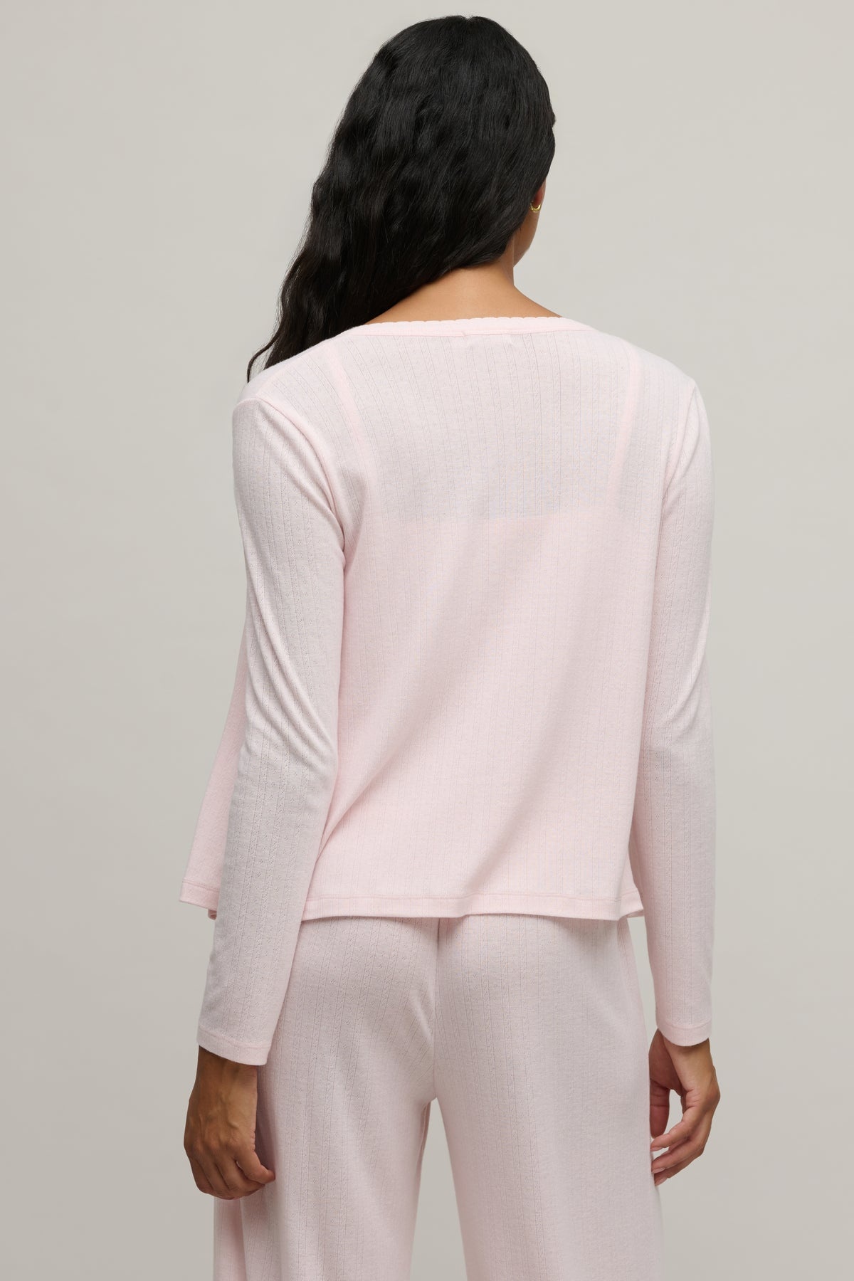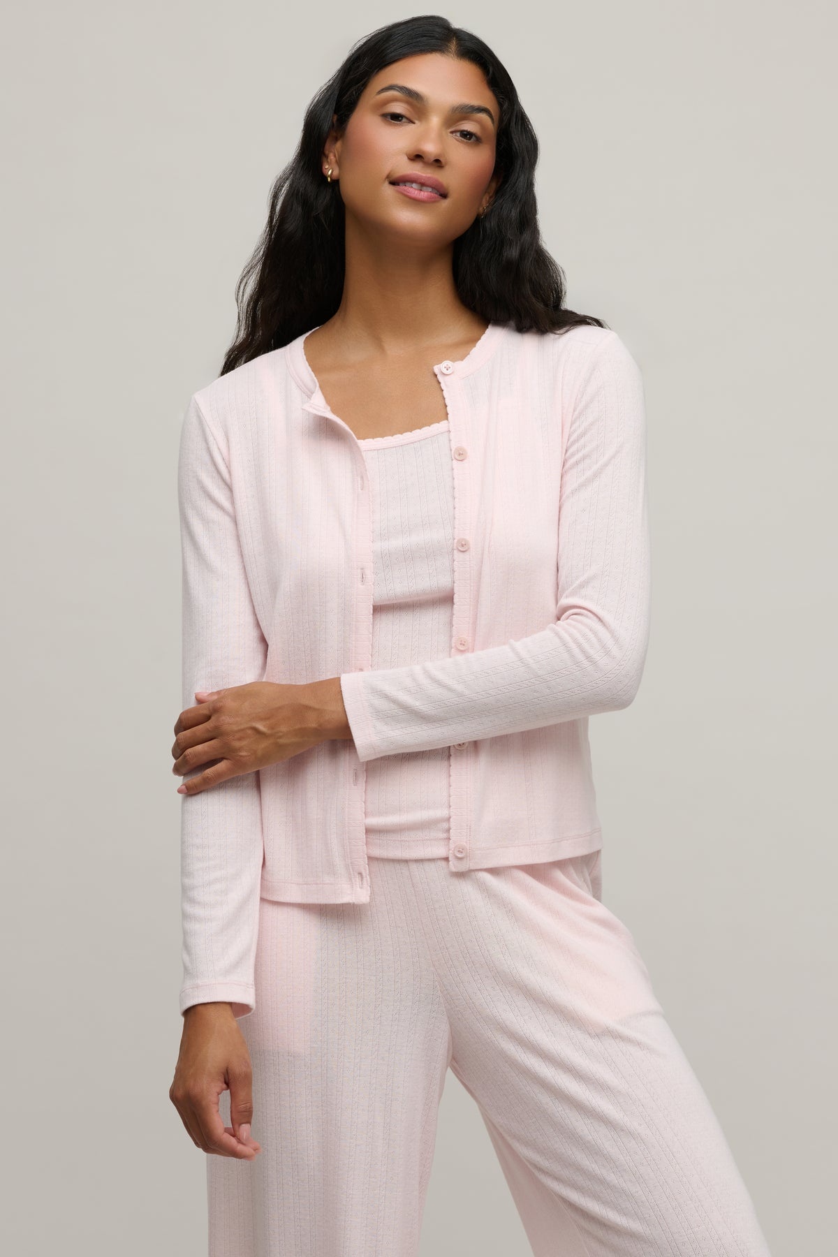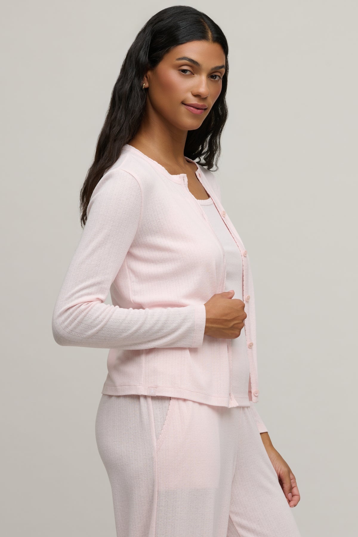 Pointelle Rib Cardigan with Scallop Trim Pink Sand