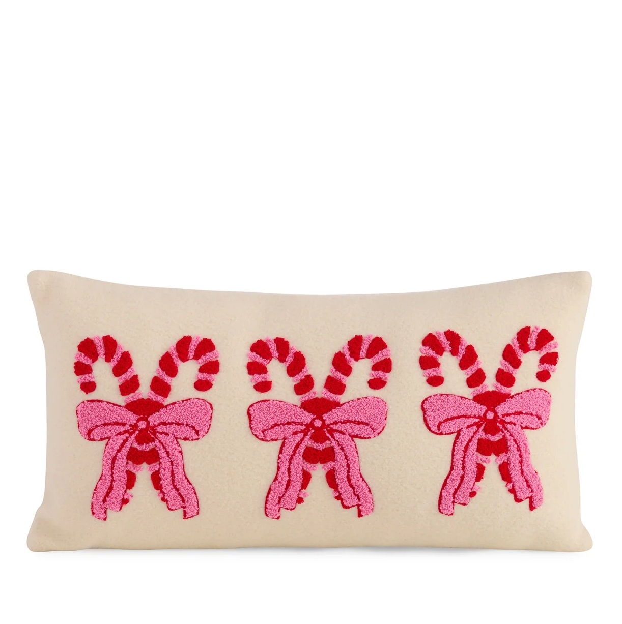 Pretty Candy Cane Pillow Ivory $59.99 Excl. tax In stock (2) Add to cartDescriptionAdd a sweet touch to your holiday decor with the Pretty Candy Cane Pillow. This cream-colored lumbar pillow features three candy cane pairs, each tied up in sparkly pink bows with vibrant red embroidery.