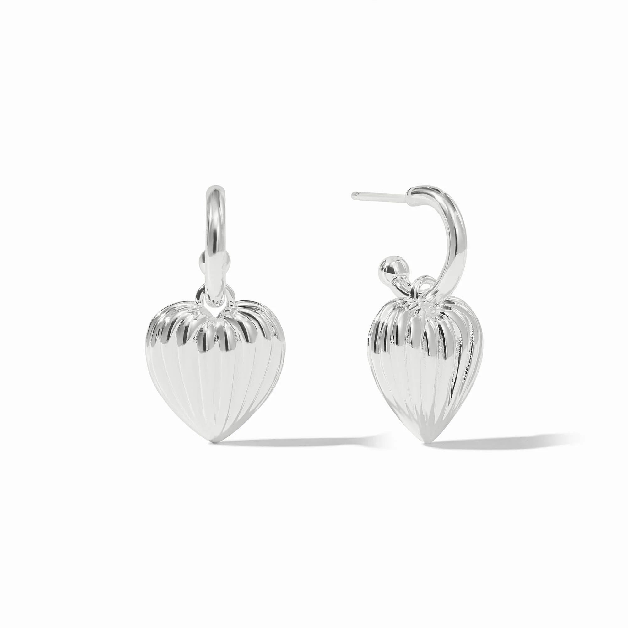 Puffy Heart Hoop & Charm Earring Silver