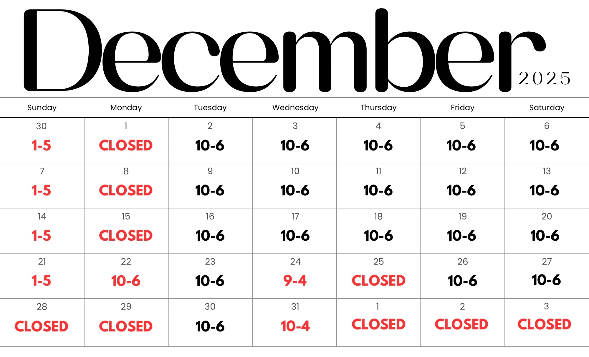 Sunday | CLOSED