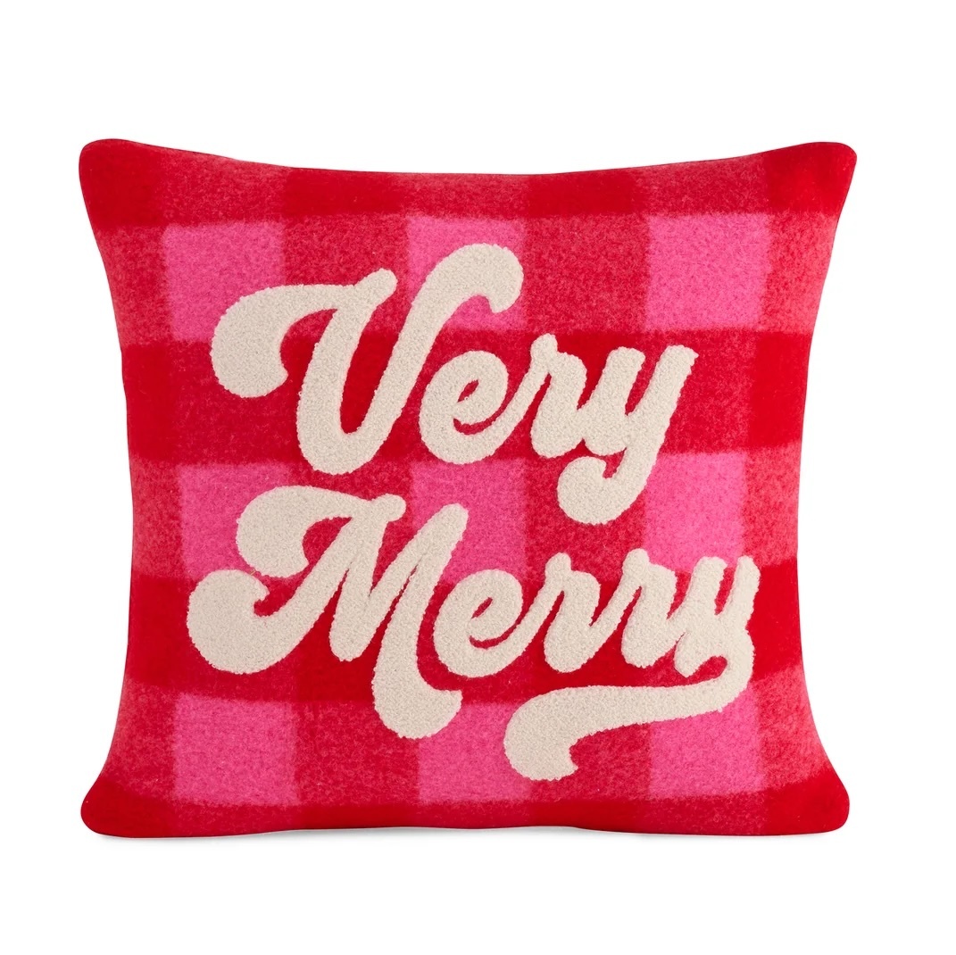 Very Merry Plaid Pillow Red $62.99 Excl. tax In stock (2) Add to cartDescriptionSpread some seasonal cheer with the "Very Merry" Plaid Pillow! Featuring bold red and pink buffalo plaid and a festive chenille "Very Merry" script, this pillow adds instant holiday charm to any space.